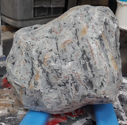 Felsattrappe aus Gips, von einem Kollegen bemalt